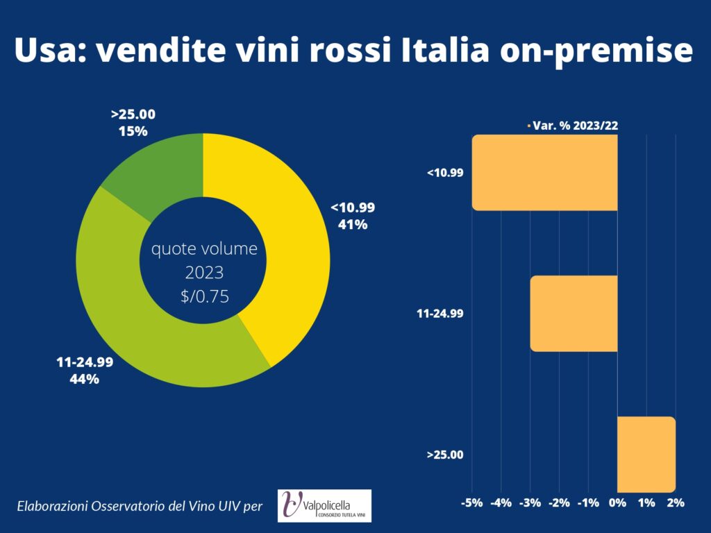 Negli Usa, per esempio, a fronte di vendite generali di vino rosso italiano a -9% nel canale più profittevole, quello dell’on-premise (ristorazione, locali, hotel), l’unica fascia di prezzo che è riuscita a strappare aumenti è quella all’ingrosso sopra i 25 dollari a bottiglia (+2%). Da qui devono ripartire i prodotti italiani, dimenticando il concetto di rosso da “mass market” e coltivando forti valori di identità e coerenza territoriale e stilistica”.