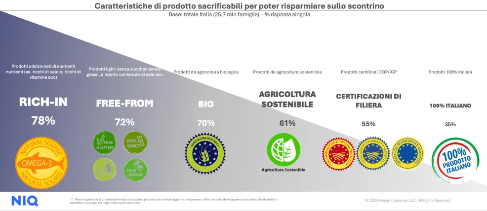 Se, in generale, l’aumento dei prezzi colpisce tutti indistintamente, le strategie si differenziano soprattutto tra i giovani (meno di 35 anni fino a 44) e le famiglie giovani. Il 90% di queste due categorie riduce l’acquisto di beni superflui, fa molta attenzione al rapporto qualità/prezzo e compra meno prodotti ma di qualità superiore.