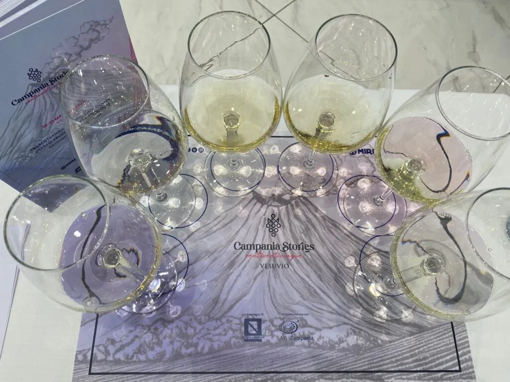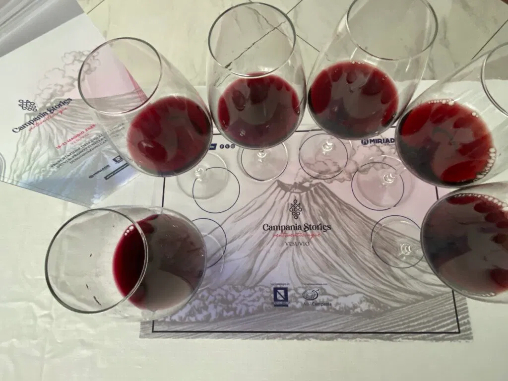 Ancora una volta Miriade & Partners, la società di comunicazione e di pianificazione organizzativa irpina, ci ha condotto in un altro territorio significativo della Campania del vino, il Vesuvio. La manifestazione è itinerante (l’anno prossimo sarà a Caserta), nata con l’intento di far scoprire ai giornalisti nazionali e internazionali i luoghi del vino, la gastronomia e la cultura dei territori campani. Quest’anno abbiamo potuto assaggiare, grazie al team di valenti sommelier AIS, 100 vini rossi e 152 tra spumati, vini rosati e bianchi (questi ultimi erano la maggior parte).