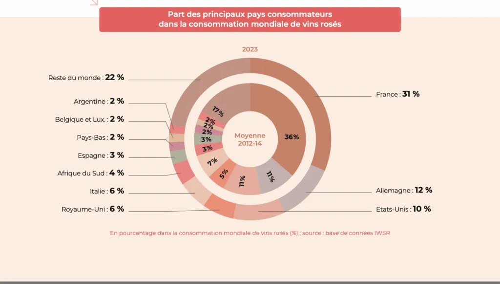 Il 10% del consumo del vino a livello mondiale appartiene ai vini rosè. E’ il dato che emerge dall’ultimo Rapporto dell’Osservatorio Mondiale dei Rosè, che valuta i consumi sul 2023,pubblicato dal Conseil Interprofessionnel des Vins de Provence (Civp) e FranceAgriMer Le esportazioni mondiali della tipologia, sempre nel 2023, ammontano a 10,8 milioni di ettolitri, con la Spagna leader in volume (39%), seguita da Francia (18%) e Italia (13%), mentre la Francia domina in valore (47%), davanti a Italia (14%) e Spagna (12%), grazie ad un prezzo medio di 4,4 euro a bottiglia e un valore totale di 2,5 miliardi di euro, quasi raddoppiato dal 2014 (1,3 miliardi di euro).