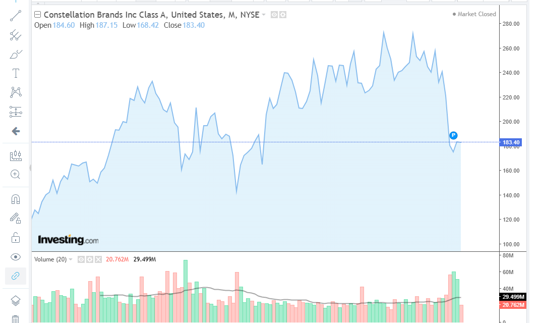 In seguito all’annuncio della ristrutturazione del portafoglio, il prezzo delle azioni di Constellation Brands ha registrato un incremento significativo. Al 10 aprile 2025, il titolo (NYSE: STZ) è quotato a 183,40 USD, con un aumento di 12,31 USD rispetto alla chiusura precedente, pari a un incremento del 7,2%. Il target price fissato oggi da Goldman Sachs e Bernstein viaggia fra i 225 e i 260 $/azione.