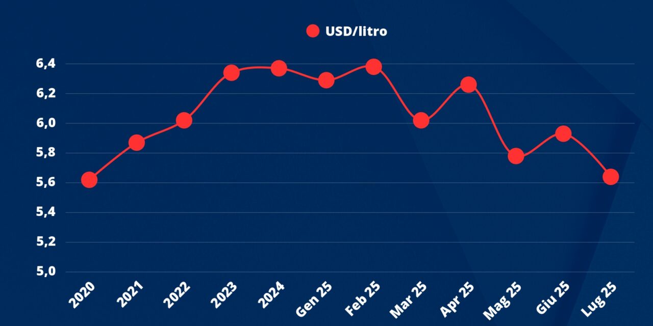 Il conto dei dazi USA? Lo stanno pagando in gran parte le cantine, se è vero che nel mese di luglio il vino italiano negli Stati Unitiè arrivato con prezzo medio ribassato (-13,5%) per rimanere competitivo anche una volta passato sotto la gogna delle tariffe. Lo rileva l’Osservatorio di Unione italiana vini (Uiv) che ha elaborato gli ultimi dati sulle importazioni delle dogane americane. La media a listino dei vini del Belpaese passa quindi dai 6,52 dollari/litro di luglio 2024 a 5,64 dollari del pari periodo di quest’anno, nonostante una fase di deprezzamento del dollaro Usa che dovrebbe invece spingere gli americani a spendere mediamente di più per comprare in euro.