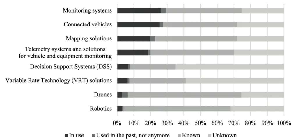 Un altro problema è che l’AI purtroppo risente anche delle dimensioni delle aziende agricole e, in Italia, in modo particolare solo il 23% delle aziende sotto i 10 ettari ha adottato almeno una soluzione 4.0, contro l’82% delle aziende oltre i 200 ettari. Analogamente, l’adozione raggiunge l’81% nelle imprese con fatturato superiore a 1 milione di euro, ma resta marginale nelle realtà con ricavi inferiori a 50mila euro. Considerando che in Italia la dimensione media aziendale è pari a 11,1 ettari (dato Istat richiamato nello studio ndr.) e che la maggioranza delle imprese è di piccola scala, emerge con chiarezza il limite strutturale alla diffusione delle tecnologie AI e di automazione.