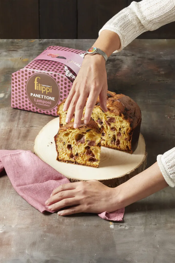 Dietro questa novità c’è la cura di una famiglia che dal 1972 coltiva la propria pasta madre viva, il lievito naturale – firma inconfondibile della Pasticceria – che dona a ogni impasto Filippi sofficità, fragranza e alta digeribilità. La farcitura del nuovo panettone, ricca e armoniosa, abbina la dolcezza acidula dei lamponi disidratati all’intensità del cioccolato fondente al 60% ottenuto da cacao Trinitario e Criollo. Quest’ultimo, proveniente dalla regione Chachi Cayapas in Ecuador, è una varietà rara e pregiata, frutto di un lavoro sostenibile e rispettoso delle comunità locali, perfettamente in linea con i valori etici di Pasticceria Filippi, certificata B Corp.