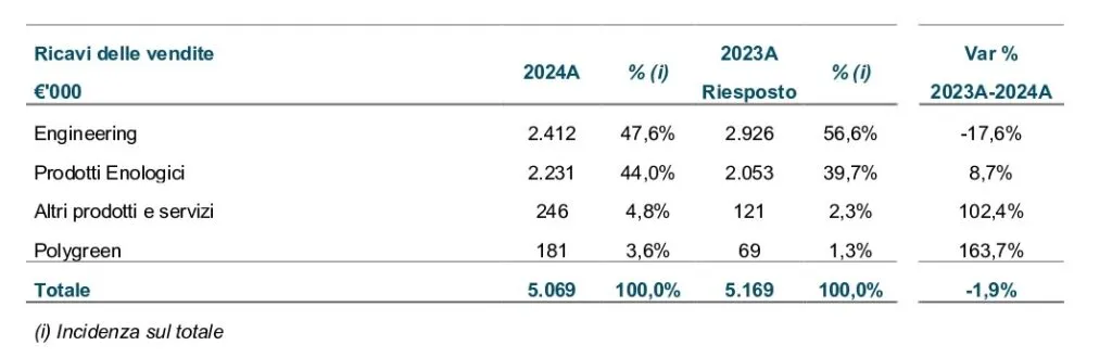 Vinext S.p.A. è specializzata nella produzione e commercializzazione di prodotti e attrezzature destinati all’industria agroalimentare che consentono di ridurre l’impatto ambientale ottimizzando l’utilizzo delle risorse. Il fatturato per attività vede la produzione di macchinari per l’industria enologica e birraria (46,4%), in particolare sistemi di filtrazione e gestione dei gas disciolti nelle bevande; la produzione di prodotti enologici (45,4%): lieviti, enzimi e soluzioni per la stabilizzazione dei vini; lo sviluppo di soluzioni per la gestione sostenibile dell’acqua nelle colture agricole (3,5%).