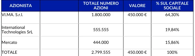 Nei fatti successivi alla chiusura della semestrale c’è ovviamente la quotazione della società nel segmento di Piazza Affari riservato alle PMI con alto potenziale di crescita: l’operazione ha previsto il collocamento di n. 999.555 azioni ordinarie ad un prezzo unitario di Euro 2,00, per un controvalore complessivo raccolto pari a circa Euro 1,9 milioni. La domanda ha superato del 30% l’offerta massima prevista, grazie all’interesse dimostrato da parte di investitori istituzionali, sia italiani che esteri. A seguito della quotazione, il flottante rappresenta il 16,95% del capitale sociale della Società, corrispondente a 444.000 azioni ordinarie.