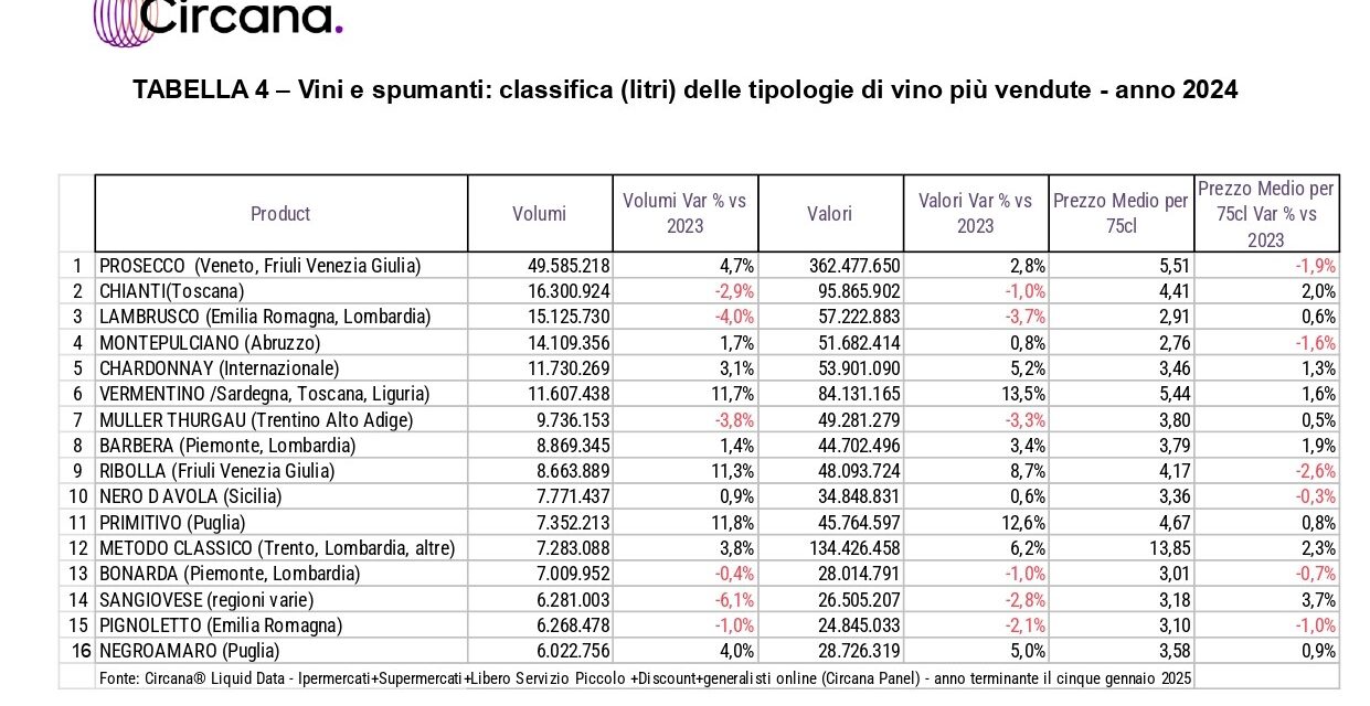 “Il 2024 ha visto migliorare il dato (pur sempre negativo) del vino. La frenata dovuta ai prezzi sembra alle spalle, in uno scenario che però non lascia del tutto spazio all’ottimismo e a previsioni di crescita sostenuta della categoria.” – ha dichiarato Virgilio Romano, Business Insight Director di Circana –“Nel 2024, le scelte degli shopper si sono indirizzate verso un minor acquisto e verso brand/tipologie con un prezzo più basso per la salvaguardia del proprio budget di spesa, eppure segnali positivi ci sono e su quelli bisogna continuare a lavorare. Sarà necessario sfruttare questo attuale equilibrio, anche se ancora precario, per fare le scelte intelligenti e lungimiranti e trovare le strategie più efficaci per contrastare una situazione inalterata dal punto di vista dell’offerta e in calo dal punto di vista della domanda, avendo come faro il consumatore”