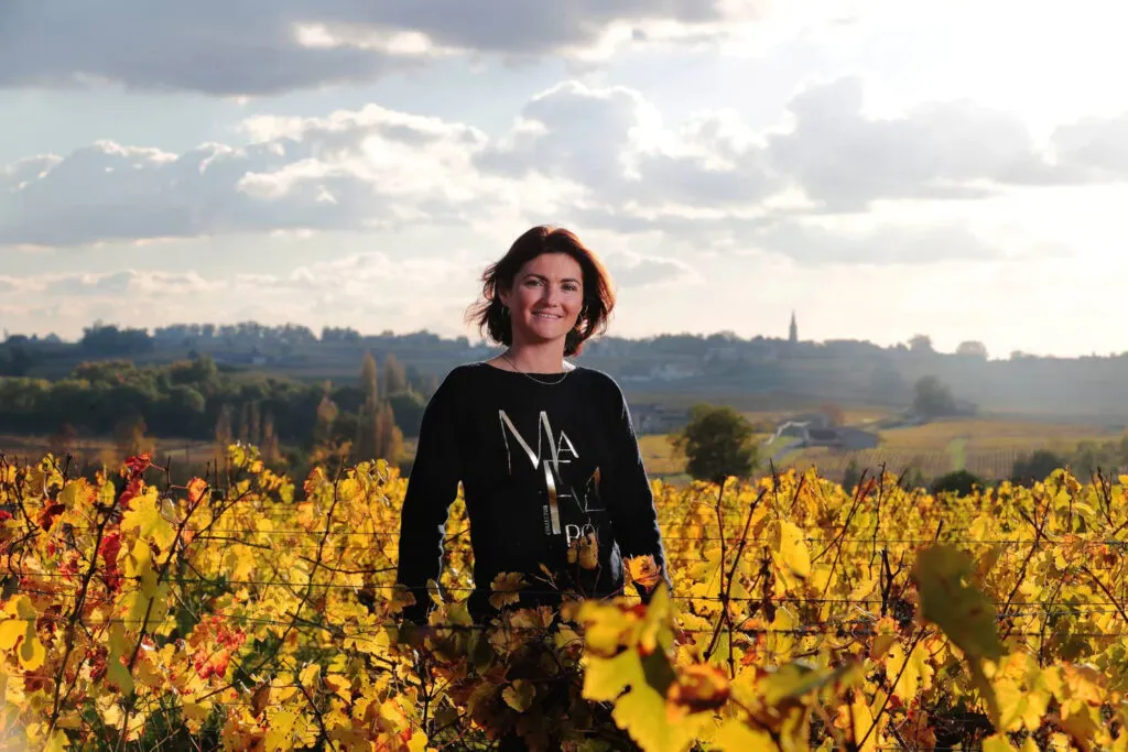 Château Edmus, Gran Cru Saint-Emilion ha de-alcolizzato un quinto della sua produzione e vende “Zero by Edmus” annata 2022 a 45 euro/bottiglia e Château Clos de Boüard – nella foto qui sopra la titolare, Coralie de Boüard -, nella vicina zona della Montagne Saint-Émilion appellation, ha già venduto 50.000 bottiglie del suo “Prince Oscar” a 0 alcol al prezzo di 25 euro.